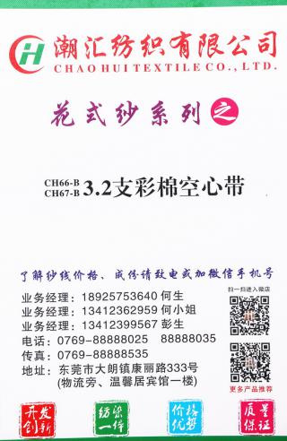 潮汇纺织有限公司位于纺织名镇--大朗镇。是一家集研发、生产、销售于一体的现代化民营企业。公司拥有一批专业纺纱工艺的高级技术人员,公司主要开发新型纱线,产品不断创新,现主要经营麻类混纺系列,兔毛兔绒系列,羊毛羊绒系列,空心带子纱系列。潮汇纺织有限公司的诚信、实力和产品的质量获得业界的认可,公司设有拼纱厂,欢迎各界朋友来料加工。潮汇纺织有限公司本着“真诚守信、共创共赢”的原则,不断提高产品的质量和服务水平,提升企业形象。您的满意是我们最多的希望,我们真诚期待着与您合作!