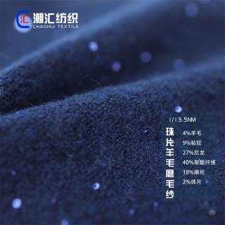 成分:4%羊毛 9%粘胶 27%尼龙 40%聚酯纤维 18%腈纶 2%珠片